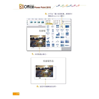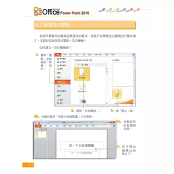 以結果導向的設計讓您輕易的製作出專業的簡報。使用插入圖片、圖表及SmartArt的功能,可讓您在簡報中的影像部分大大的加分,套用所要的範本即可製作出媲美專業的簡報。
