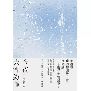 以篇名作為書名的〈今夜大雪紛飛〉,逸蹤寫高中同學Y的人生,愛抽雪茄的Y宛如「反覆啜著生命脫離常軌的氣味」;現實與理想,迷惘與自覺間的矛盾拉扯扯出一場大雪,或可是富士山下河口湖濱真正的雪原,且讓足跡逸去,自由無蹤。