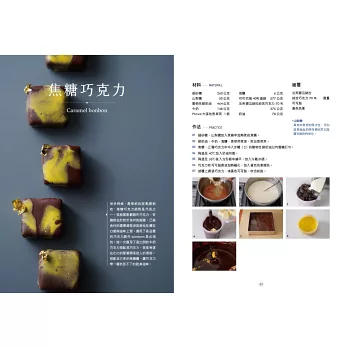 在法國他養成了甜點的專業技能,這些都將運用在這本書當中不同的配方裡。他的美學也透過一道道美麗的成品顯現出來。透過這本書,他將自己的世界呈現出來給讀者,並給予啟發。