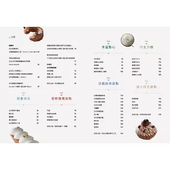 本書所展現的甜點,都是我甜點生涯中最喜歡的產品以及搭配,以簡單的方式組合、以清晰 的視角說明,都是多年累積下來的經驗。感謝總編輯云喬的出書邀約,以及為這本書付出很多心 力的編輯小苹,和我一起蘊育這第一本書能和大家分享。最後感謝甜點路上指導過我的師傅、同 事們,生活中每個看似不起眼的小細節都影響著我創作的靈感,盼有幸能提供給喜愛甜點、喜愛 創作的各位,與我一起在甜點的無限世界中持續分享進步。