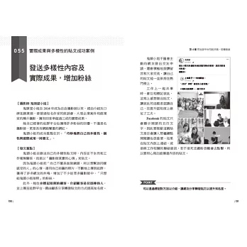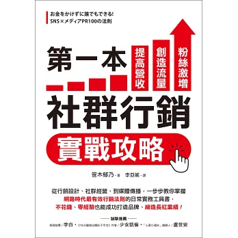 本書是將我的自身經驗和經營行銷公司時協助過的許多企業案例擷取出來,集結而成的日常實務工具書。此書並非紙上談兵,而是嚴選出真正可以提高營收、創造流量、粉絲激增的法則。