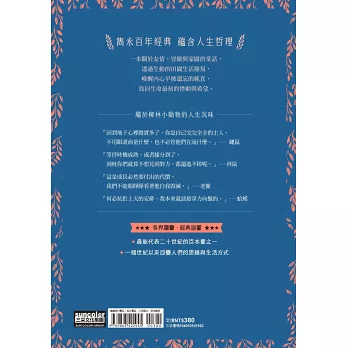 洋溢著對生活的熱情與愛,《柳林風聲》與 A. A. Milne 的《小熊維尼》,及Helen Beatrix Potter 《彼得兔的故事》,並列為三大成長及動物文學經典,值得大家細細品味!––作家 謝哲青