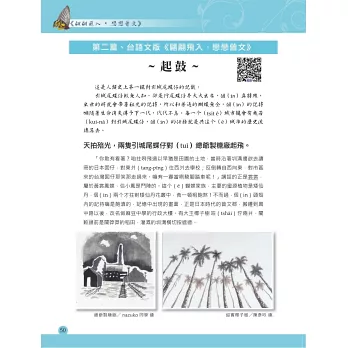 欣羨麻中有遮濟有心的大人為囡仔製作這款教育的 媒體,對著解說、傳承一个所在「人文」佮「生態」,用媒體的創作來予咱的序細了解家己成長的故鄉,套一 句佛家的講法,這真真正正是咧做功德。