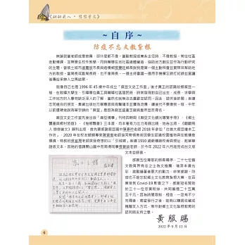 如今我接到黃服賜博士編輯出版第三本專輯《翩翩飛入 戀戀曾文》的樣書扉頁檔案,邀我寫序。翻閱寄來的目錄及序文,仔細閱讀發現這本專輯,是一本校園書寫,集眾人之力量把一個校園中的各種生活面向、生態植物、校園沿革,透過繪畫與文字記錄下來,帶出校園中的自然生態與藝術人文,這些繪本故事將植入許多人的心中,並成為一種校園的精神力量,值得推薦給從事文化工作的朋友,希望大家能落實自己生活環境,去做各種藝術的創作,落實在地化的校園書寫。