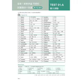 本書特別為考生整理最常出現在多益測驗中的單字和片語,附錄於模擬測驗詳解之後,讓你在寫完模擬試題後,用整理好的單字表記住不熟悉的單字,不止能提升解題技巧,更能增加自己的單字量、提升實力也增加理解力!
