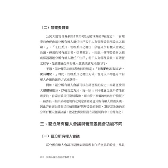 這也是本書編纂的動機:我們希望可以透過這本小書,更有效協助社區建立起完善的公寓大廈法務管理體系。