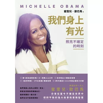 蜜雪兒‧歐巴馬希望透過新書《我們身上有光》幫助任何人度過疑惑和不確定的時期。 繼回憶錄《成為這樣的我》廣受好評之後,蜜雪兒‧歐巴馬與眾人一同歷經疫情後世界的各種變化。在最新作品《我們身上有光》中,她分享自己的脆弱與困頓,並帶領讀者和她一起找到力量之源。以下是蜜雪兒‧歐巴馬針對 more
