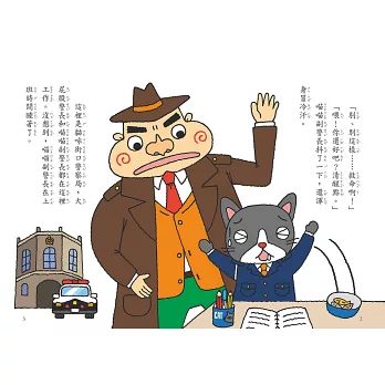 這裡是貓咪街口警察局,大屁股警長和喵喵副警長是偵破無數懸案的超級搭檔。「我好無聊啊!」喵喵副警長一邊吃點心,一邊抱怨沒有案件發生。大屁股警長聽了,忍不住說:「你怎麼可以說出這種話,這樣的心態真要不得。你瞧!委託信不是來了嗎?」