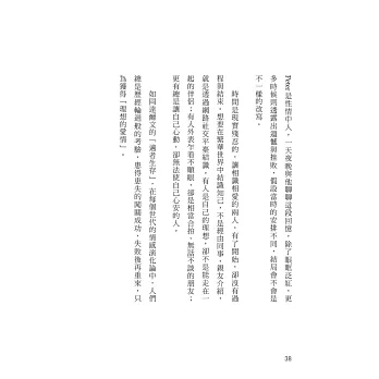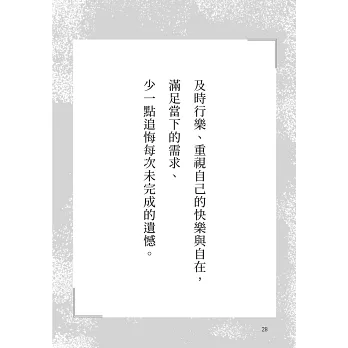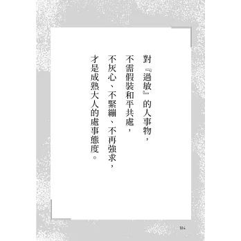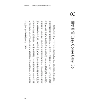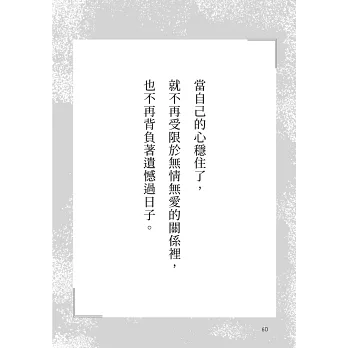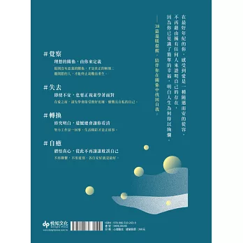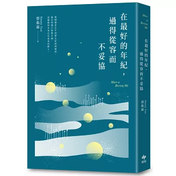 而《在最好的年紀,過得從容而不妥協》,將帶領你面對人際關係中的四大階段,也許這世界有時很冷漠、有時很現實,但你仍得努力生活、用力去愛,以溫柔而堅定的力量面對這個世界,找到屬於自己愛的模式。