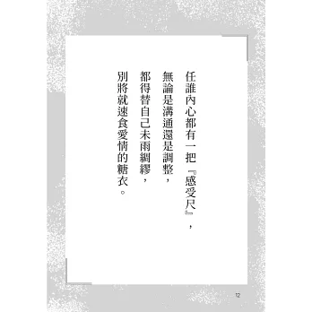 ──「任誰內心都有一把『感受尺』,無論是溝通還是調整,都得替自己未雨綢繆,別將就速食愛情的糖衣。」