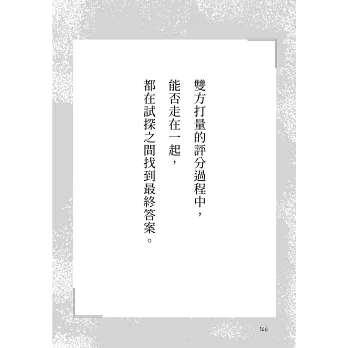 ──「預設立場,總讓你認為自己應該如何被對待,卻忘了真正的愛是兩人互相理解、默契十足。」