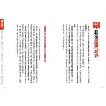我們經常在街上看到的指壓療法,多半是以腳底的刺激為主,但本書將會介紹足部整體的複數穴道,以及小腿、小腿肚的最佳自我刺激法。藉由同時刺激腳和小腿肚,就能更有效果地完成改善身體不適的自我保養。