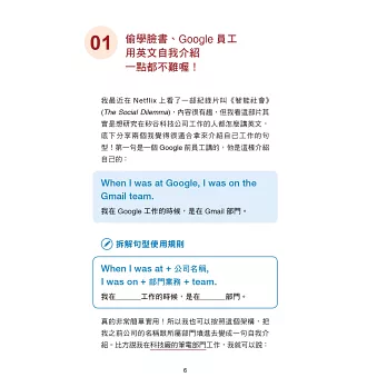 英文學很多,卻還是說不出口?本書蒐羅、分析了美國各大真實職場語料,每個句子都來自第一線上班族所講的英文,整理成250句模板,並教你拆解句構、看穿句型的關鍵方法,從此在職場上、面試場合,也能自行延伸應用模板句型。