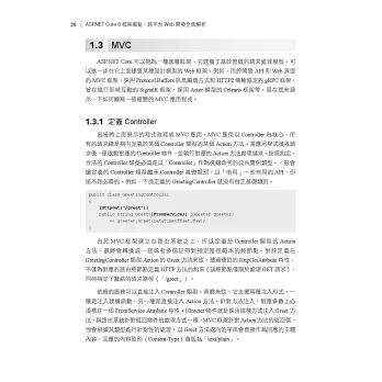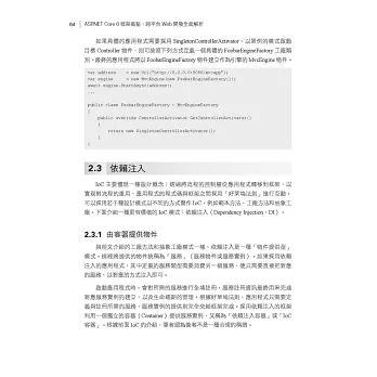 • 剖析支撐 ASP.NET Core 的基礎框架(依賴注入、組態選項、診斷日誌、物件池、資料保護等)。