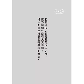 把拖延拋向九霄雲外,你會很快愛上煥然一新的自己。閱讀這本書,將助你一臂之力。——王意中|王意中心理治療所所長、臨床心理師