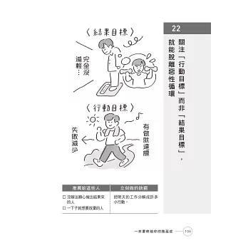 我有過動症並擔心自己會拖延,所以拿起了這本書。我即使拖延了也想把事情做得完美,原本在減重時只關心體重的數字,而書中提到要重視「行動目標」而不是「結果目標」,讓我茅塞頓開。我想從我每天做的事情開始改變。