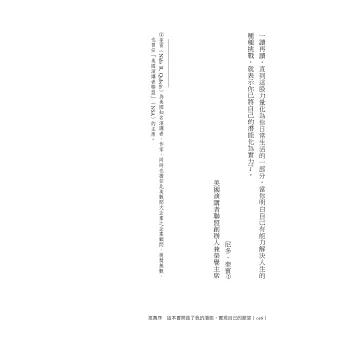 ◆我在人生中所需要的一切支持和鼓勵,都可以從這本書中找到。——尼多.奎賓/美國演講者聯盟創辦人兼榮譽主席