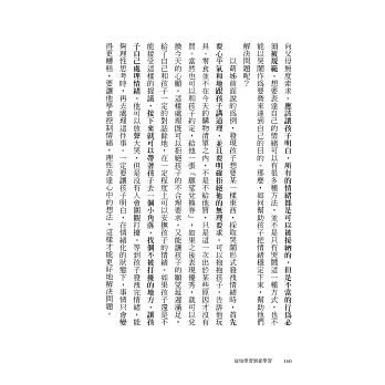 書中的實用教養建議,讓父母讀懂孩子日常的表現和行為,告別錯誤的引導方式,幫助孩子建立足以應對未來挑戰的競爭力和終身學習思維。