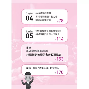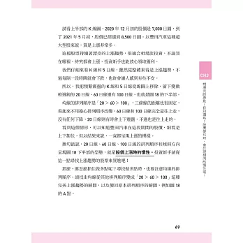 相場師朗最擅長圖解,一看就懂,非常適合「擔心專有名詞太艱深」的初學者來學習。就拿買賣訊號來說吧,在技術型的股票書籍中,會要你尋找「已完成的訊號」,但通常這樣的股票,會在短時間內漲上天,很容易發生追高買入的危險。相場流的做法,會找出「即將出現的前兆」,讓新手們都有機會上車!