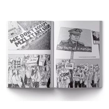 緬甸在2023年2月1日便進入了政變後的第三年,本書透過曾任職於關注緬甸民主人權議題的法文網站Info Birmanie斐德希克.德波米的描述、香港藝術家柳廣成的畫筆,回顧了緬甸政變後的重大發展,也提供了一些關於緬甸歷史背景的重要脈絡。圖文並行的方式,讓我們可以一窺緬甸人的堅毅,相信穿越過這些場景後,一個個有血有淚的緬甸人將深深烙印在讀者的腦海裡,從此緬甸不再是一個東南亞的陌生國度。即便全球各地對緬甸的關注度不若政變發生初期,針對此地持續發生慘絕人寰事件的報導也黯淡了許多,「關心」與「傳遞故事」仍是我們作為局外人,除了出錢出力之外,可以做的小小貢獻。