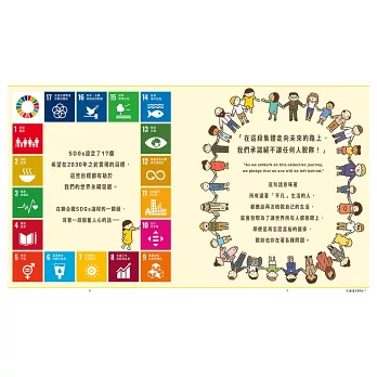 這本書可以讓我們夠容易的帶著孩子們去了解SDGs,為什麼聯合國要訂下包含環境、經濟、社會……這麼大範圍的17個目標?SDGs已經成為全球的共通語言,但這些目標跟我們的關聯性又在哪?書中都有很淺顯易懂的說明和舉例。