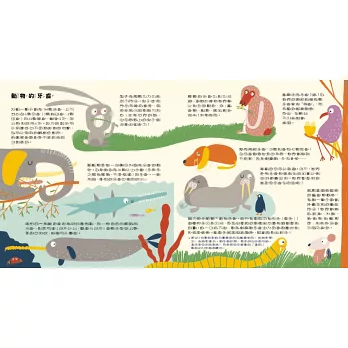 繪本內容完整,知識含量豐富,從牙齒的組成、生長的過程、如何刷牙、對身體健康的影響,以及動物如何刷牙,以至各國關於牙齒的趣聞,運用生動活潑的口吻清楚呈現,流暢易讀。