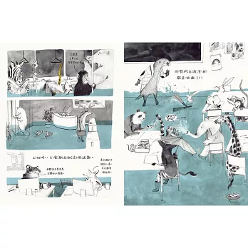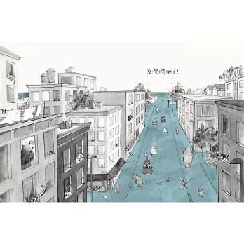 城裡的動物看似碰到相同的問題,但實際上,一直到連最高的長頸鹿也泡在水裡時,大家才開始正視問題的嚴重性。本書以詼諧的方式,討論了社區關係、同理心和正義的問題,跨越了世代與文化,適合所有年齡層的讀者。──兒童文學評論家蒂塔.貝雷多(Tita Berredo)