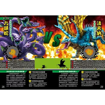 除了24種龍對戰的震撼畫面,書中還根據力量、魔力、防禦力、抗魔力、生命力、耐力、速度和智慧,製作出各項「排行榜」,讓牠們的各項能力更加一目了然。