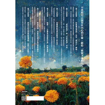 本書以六次「金盞花哀悼聚會」展開。金盞花的花語是「幸福一定會到來」,也是動畫《可可夜總會》中,撒在連接人世與陰間那座橋上的花。作者將以專業的方式引導你循序漸進、完整地緬懷逝者,為自己重新找到前進的力量。