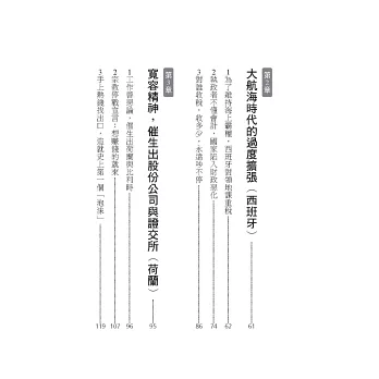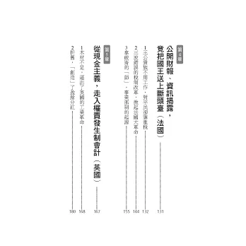 本書這趟「會計與企業經營的世界史之旅」,啟程於700年前的義大利,圍繞著西班牙、荷蘭、法國、英國與美國等,在不同時代中的經濟大國,展開我們的故事。