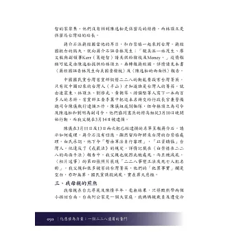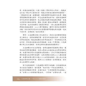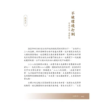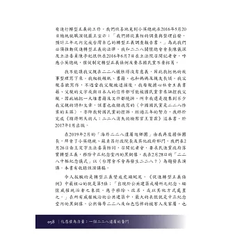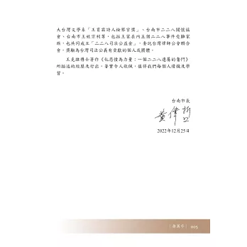王克雄博士於台大畢業後,留學美國取得電機博士學位,儘管在海外事業飛黃騰達,但仍心懸自己永遠的故土台灣及家鄉台南。本書字裡行間句句透露對台灣的關心,多次千里跋涉飛回台灣參與重大政治事件及選舉,尤其在轉型正義及二二八真相的發掘。本書所收集王博士五篇二二八加害者的報告,深入且公正地描述加害者的所作所為,揭明二二八慘案的一系列黑歷史,其付出心血著實令人敬佩。