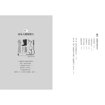 「獸醫師這種工作,確實存在著一種魔力。一開始吸引我們的,也許單純只是喜歡動物……做了一段時間,真正反芻了每一位畢業生離開前在學校宣誓的獸醫師誓詞後,會慢慢長出使命感,轉成一股對生命、自然敬畏的心情。」──龔建嘉