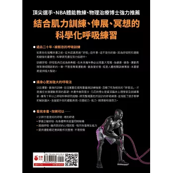 「終於有一本專門講解如何透過呼吸提升傷害復原力及運動表現的書了,這本書十分令人著迷,以科學為基礎,再加上實際案例支持,甚至還有應用層面的方法教學,無論是肌力或耐力運動員都能善加利用。」——麥吉爾博士(Stuart McGill),加拿大滑鐵盧大學脊椎生物力學榮譽教授