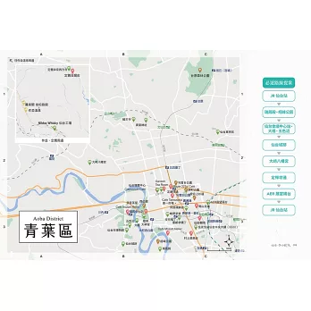 2.精心繪製仙台地下鐵、LOOPLE仙台巴士路線圖、仙台商店街地圖,以及青葉、宮城野&若林、太白、泉區及宮城縣五張區域地圖。