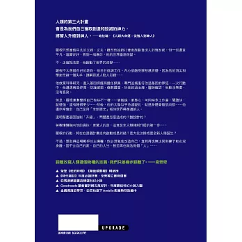 ※如果克萊頓動手寫超級英雄小說,就會是《升級UPGRADE》……故事流暢,情節俐落,千驚萬險之間出現令人佇留低迴的動人字句,掩卷後仍惆悵難忘。──《紐約時報》書評