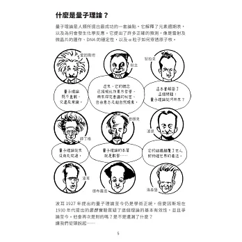 隨著書中娓娓道來量子理論的誕生故事,你會看見如今鑲嵌在萬神殿中的大名:普朗克、愛因斯坦、波耳、海森堡、薛丁格、狄拉克……在成為世界尊崇的英雄之前,都是飽受質疑的科學家。追尋他們的訝異、掙扎、發現和猶疑,有如親臨大師的工作現場,你可以和他們一起困惑、摸索、思考,最後一同享受發現的震撼與喜悅。