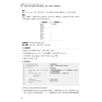 ‧精選306道程式設計競賽試題,其中160道試題作為實作範例試題,每道試題不僅有詳盡的試題解析,還提供標有詳細註解的參考程式;另外的146道試題為題庫試題,所有試題都有清晰的提示。
