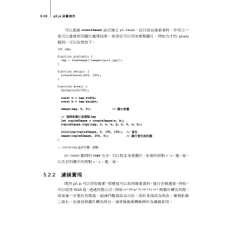- 介紹 p5.js 的影音支援,包括影音資料輸出輸入的介接與控制。