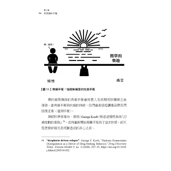 ►本書探索了一組楚河漢界,一邊是一針多巴胺打進身體的感覺,那針頭可能是手機、是賭博、或是一大袋樂事玉米片,另一邊是在健康、正向、穩定的生活中持續往前。