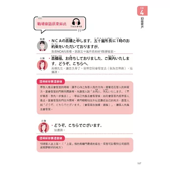 真實的模擬對話,隨時提醒日商職場文化與禮儀,完美避開可能會犯的錯誤!