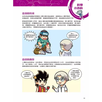 設有「科學小百科」單元,藉由X星際探險隊隊員的生動對話和淺顯易懂的文字,來介紹血液如何在身體裡流動、血型系統中的貓熊血是什麼、為什麼捐血有規定的量和時間、哪些動物和蚊子一樣會吸血、為什麼有些動物的血液是藍色或綠色、動物是否和人類一樣有血型等超炫知識,讓小朋友有系統的學習。