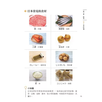 ★日常單字:日本生活會碰上的日本語單字為本書的重點,例如日本有什麼家常菜、該怎麼唸、長什麼樣子,一口氣展現給您。