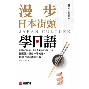 漫步日本街頭學單字!生活中一定碰的各種食、衣、住、行生活單字,不只教您有什麼東西、和怎麼念,更會進一步說明各單字背後的意義,圖示 + 解釋 + 母語人士發音示範,多重角度徹底理解,當然也就記得住!