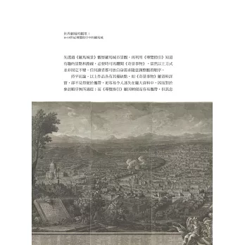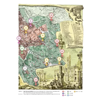 要能這樣從新的角度觀察羅馬城,需要的是別出心裁的史料運用:16至18世紀的「導覽指引」。本書中除了王健安一貫擅長的版畫圖像之外,觀光導覽小冊、地圖,乃至於時人留存的科學圖像,都是窺探當時人們在羅馬城走跳時,那股悸動與精神世界的絕佳材料。有趣的是,這些「導覽指引」其實並無法完全類比現代人的觀光實用叢書,在過去,這些資料依著執筆者的背景、出版的目的與用途,各有不同的形式與主題。