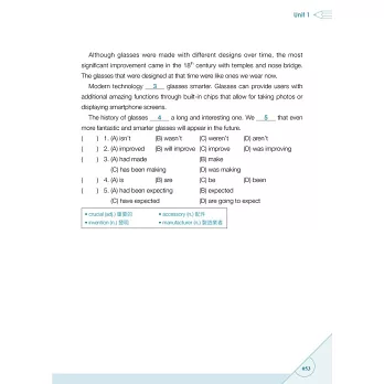 ★解題技巧:每單元附有題目解題技巧,幫助讀者快速掌握文法考題方向。