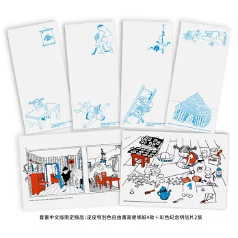 套書中文版全球限定贈品:皮皮特別色自由書寫便條紙4款+彩色紀念明信片2張