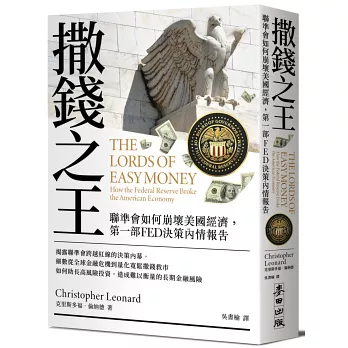 《撒錢之王》說出一個讓人震驚但又引人入勝的故事,透過一位試著警告眾人的聯準會資深官員傳達的資訊,娓娓道來量化寬鬆如何損害了美國經濟,擴大了全球金融風險。這是第一份內情報導,告訴我們為何今天會來到這般地步,以及為何我們將要面對的是令人恐懼的未來。
