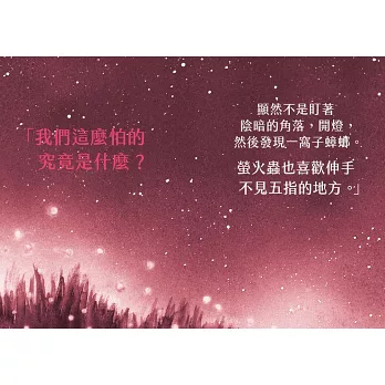 但事實上,這本日記也是為了我自己。從你們的來信、電郵、社群媒體留言,以及你們和其他讀者的對話,我知道我們相似多於相異。我們擁有同樣的人性——換句話說,我們都是仍未完成的作品,也都在與彼此的連結中成長,就像我在《也許你該找人聊聊》一開始所說的一樣:「心理師固然為病人捧著一面鏡子,但病人何嘗不也為心理師捧著一面鏡?心理治療絕不是單向的,它是平行的過程。每一天,病人都為我們開啟我們必須為自己思考的問題⋯⋯我們是反射鏡子的反射的鏡子,讓彼此看見自己還看不見的角落。」