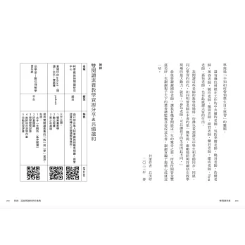 五堂課的雙閱讀素養教學設計,則是本書送給老師的禮物。雖然許多老師也體察到培養雙閱讀素養的重要,但如何應用學理,因應不同年段、按部就班的實施教學,也是一大挑戰。本書提出「閱讀、理解、探究、整合、發表」五步驟的學習歷程,循序漸進幫助學生成為優讀者。