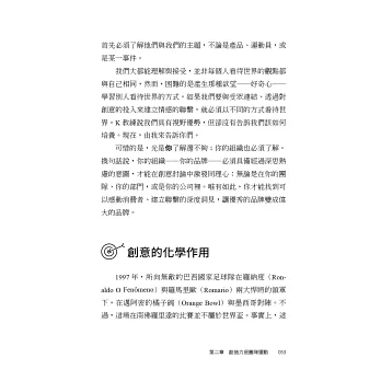 不管你是一人團隊或隸屬於千人團隊,無論品牌與資源的規模大小,本書都能帶領你和團隊與品牌,說出引人入勝的故事,達成卓越的創意水準,建立並維持與顧客之間強烈的情感連結。
